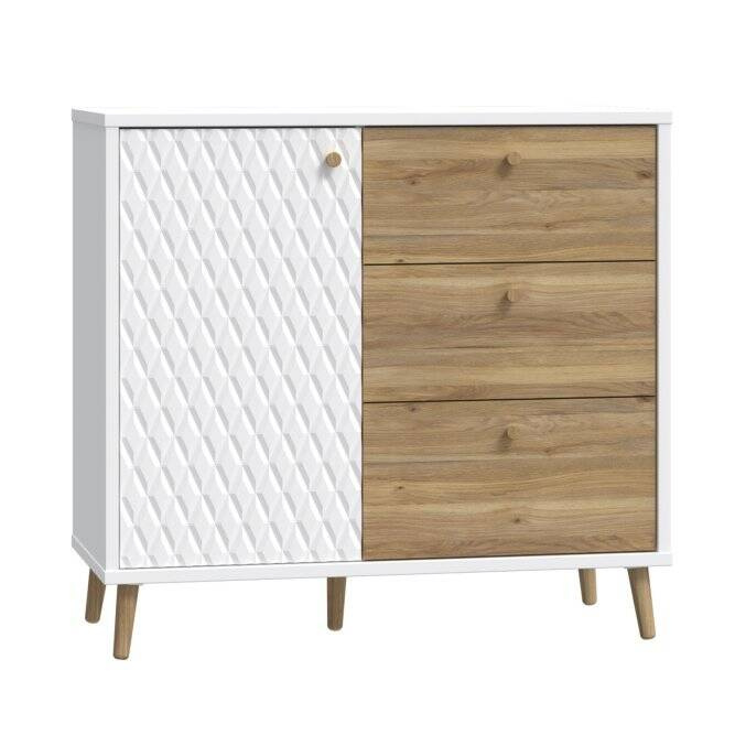 Kolekcja AKSANA to eleganckie połączenie nowoczesnego stylu z subtelnymi, ryflowanymi wstawkami na frontach, które dodają wnętrzu charakteru i głębi. Wysokie nóżki nadają meblom lekkości, a jednocześnie ułatwiają utrzymanie porządku. Choć dedykowana przede wszystkim do salonu, w kolekcji znajdziemy również stylowe biurko, które idealnie komponuje się z resztą elementów. Jasne wykończenia oraz prosta forma mebli sprawiają, że AKSANA doskonale odnajdzie się w nowoczesnych wnętrzach. To propozycja dla osób, które cenią stylowy wygląd połączony z praktycznymi rozwiązaniami.
