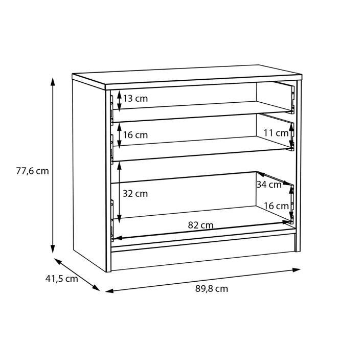- Mebel o wymiarach: szerokość 89,8 cm x wysokość 77,6 cm x głębokość 41,5 cm
