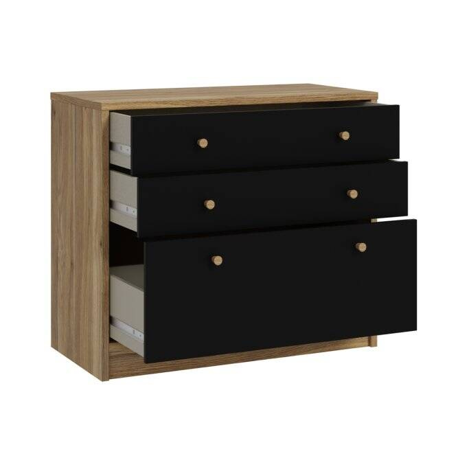 - Komoda w efektowym połączeniu dekorów Dąb Mauvella i Czarny