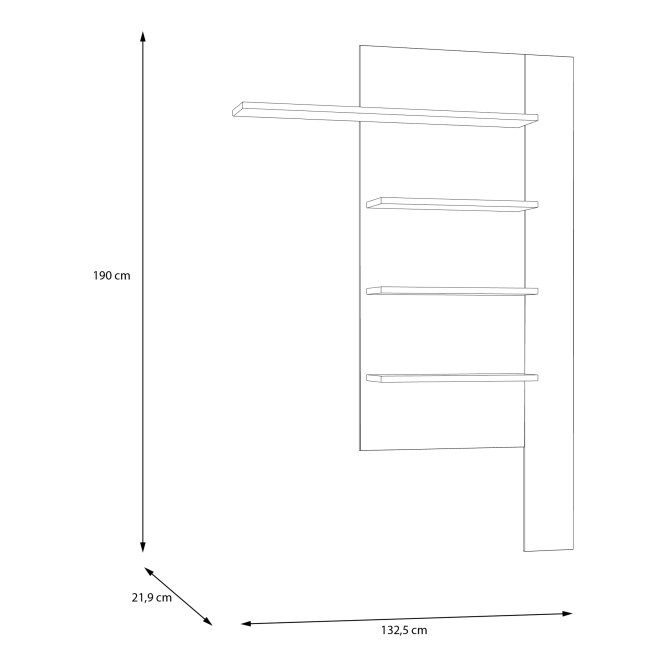 - Wymiary: szerokość 132,5 cm cm, wysokość 190 cm, głębokość 21,9 cm