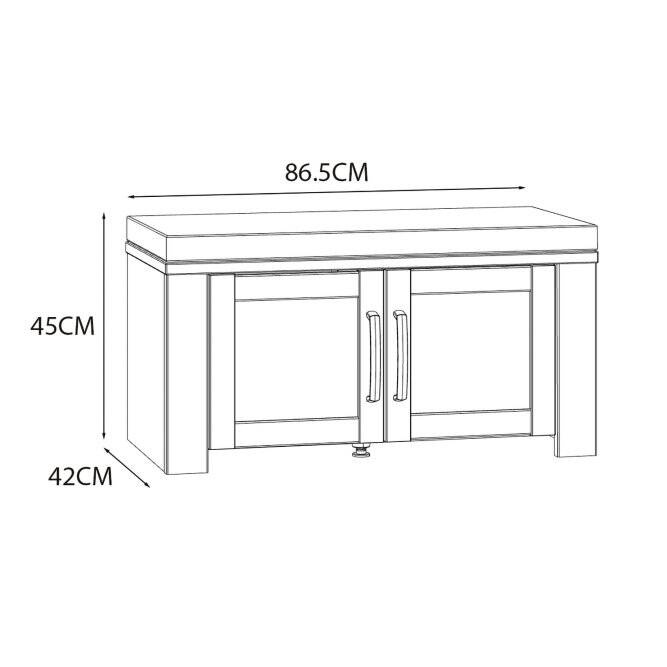 - Wymiary ławeczki: 86,5 cm szerokości, 45 cm wysokości oraz 42 cm głębokości