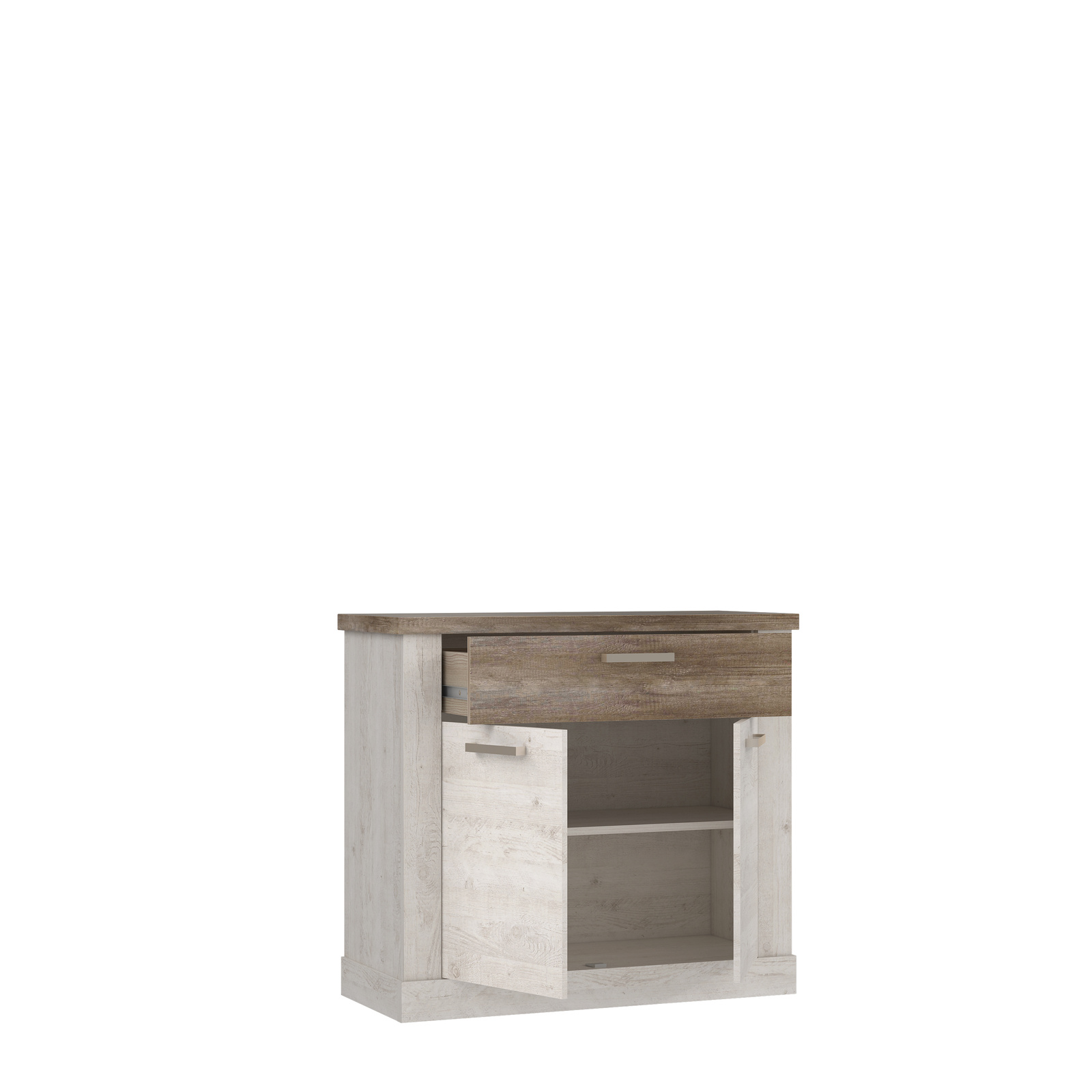 • Komoda posiada pojemną szufladę i szafkę z dwoma drzwiczkami, dzięki czemu stanowi odpowiednio dużo miejsca do przechowywania