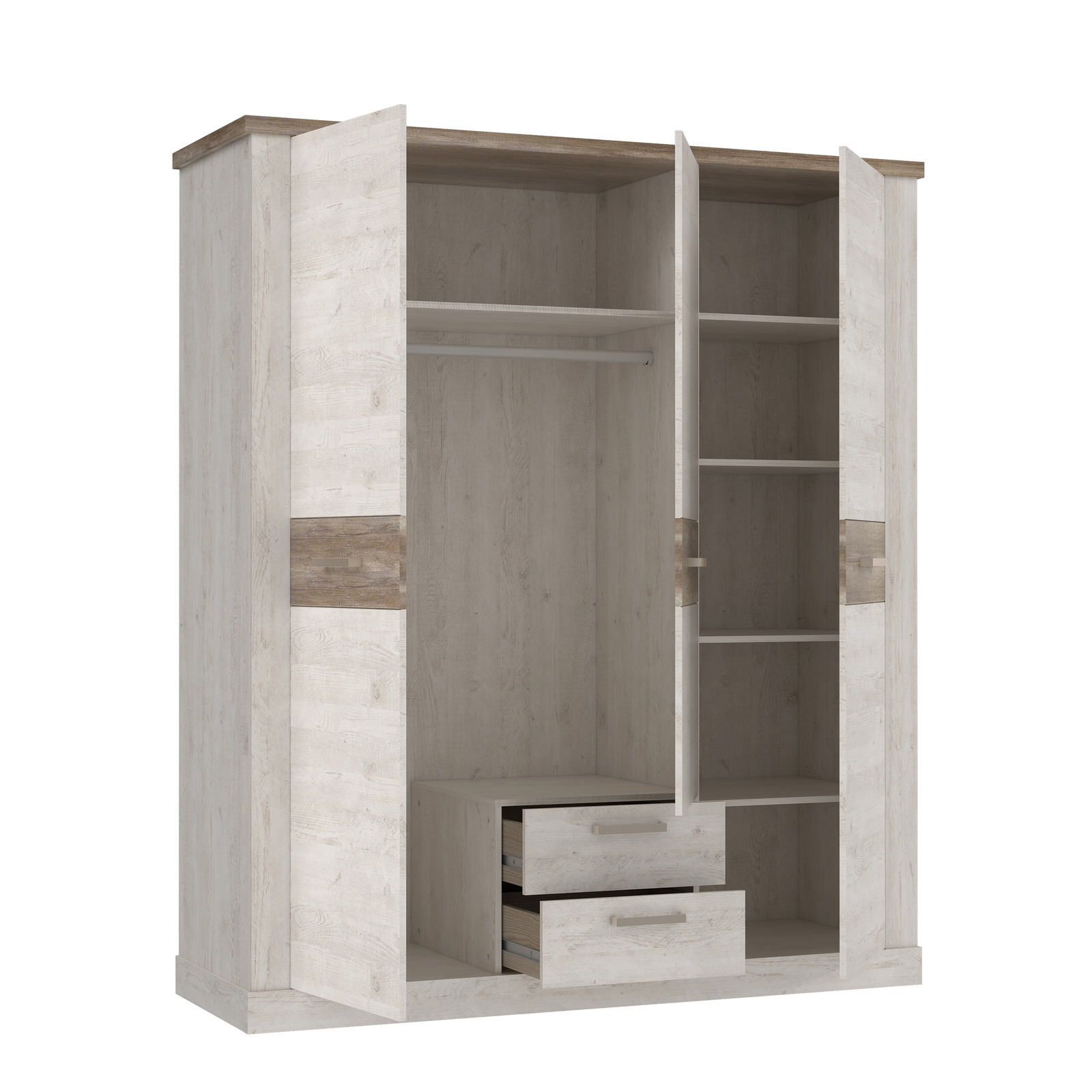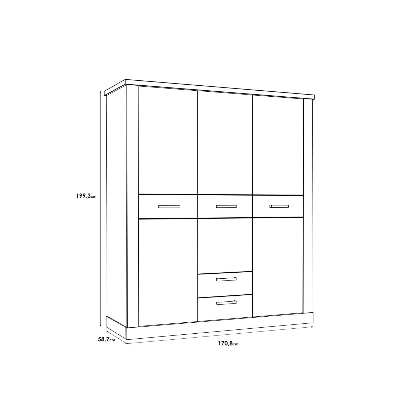 Elegancka trzydrzwiowa szafa to świetny mebel do sypialni, przedpokoju oraz pokoju młodzieżowego. Dzięki połączeniu dwóch subtelnych dekorów- Pinia Biała i Dąb Antyczny szafa doskonale sprawdzi się w każdej aranżacji wnętrz. Przemyślany projekt szafy zapewnia wystarczająco dużo miejsca do przechowywania odzieży.