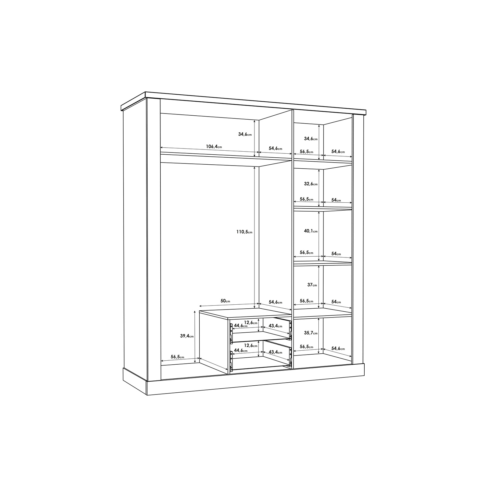 - Podział szafy na dwie części- jedną z długą półką, drążkiem i szufladami oraz drugą z półkami pozwoli na odpowiednie rozmieszczenie ubrań i ułatwi zachowanie porządku