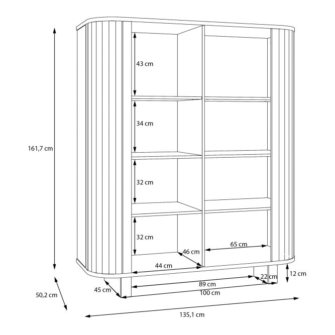 Wymiary: szerokość 135,1 cm, wysokość 161,7 cm, głębokość 50,2 cm