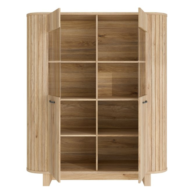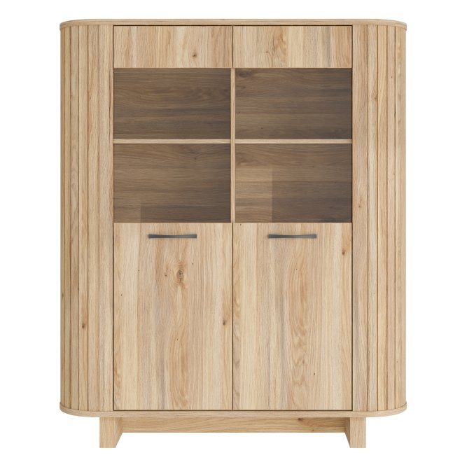 Witryna z kolekcji FORMSWIFT świetnie wyeksponuje Twoje ulubione książki, pamiątki oraz dekoracje, a pomoże w tym aż 8 półek. Mebel wyposażony w transparentne, bezpieczne szkło hartowane. Klasyczna witryna doskonale wygląda zestawiona z pozostałymi elementami z kolekcji, tworząc wymarzoną aranżację salonu.