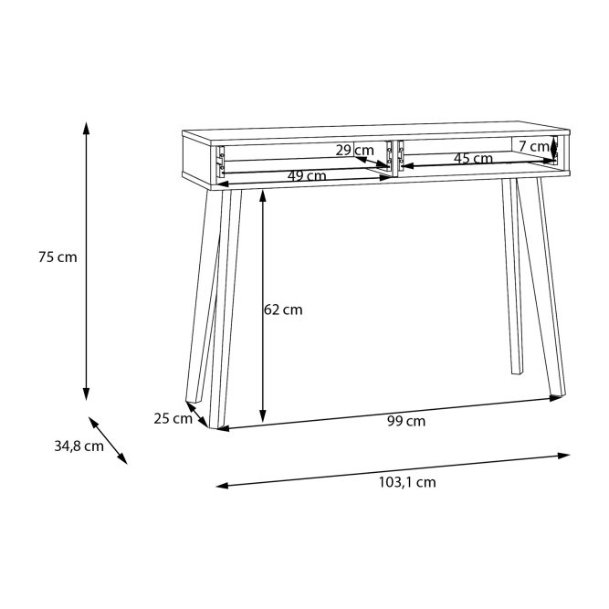Wymiary: szerokość: 103,1 cm, wysokość: 75 cm, głębokość: 34,8 cm