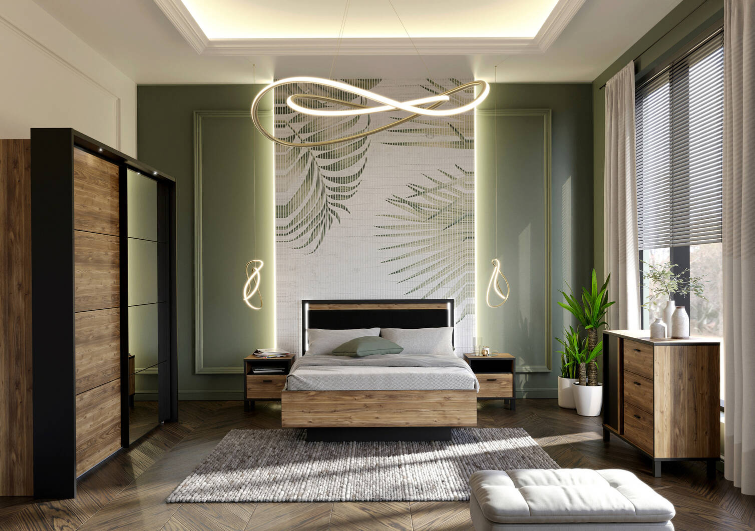 Stonowane barwy ziemi kolekcji HAYATO – dekor Świerk Alpejski w nieco surowej odsłonie i głęboka czerń - tworzą niepowtarzalny kontrast kolorystyczny. Takie zestawienie doskonale odnajdzie się w industrialnym lofcie, wnętrzu urządzonym w duchu japońskiego minimalizmu, a także klasycznej przestrzeni. Meble pozbawione są wymyślnych ozdobników. Jedynie długi pionowy uchwyt biegnący przez całą wysokość frontu jest elementem dekoracyjnym, a przy tym to bardzo praktyczne rozwiązanie, ponieważ możemy go chwycić w dowolnym miejscu. Kolekcja łączy w sobie wszystko, co niezbędne do stworzenia komfortowej strefy