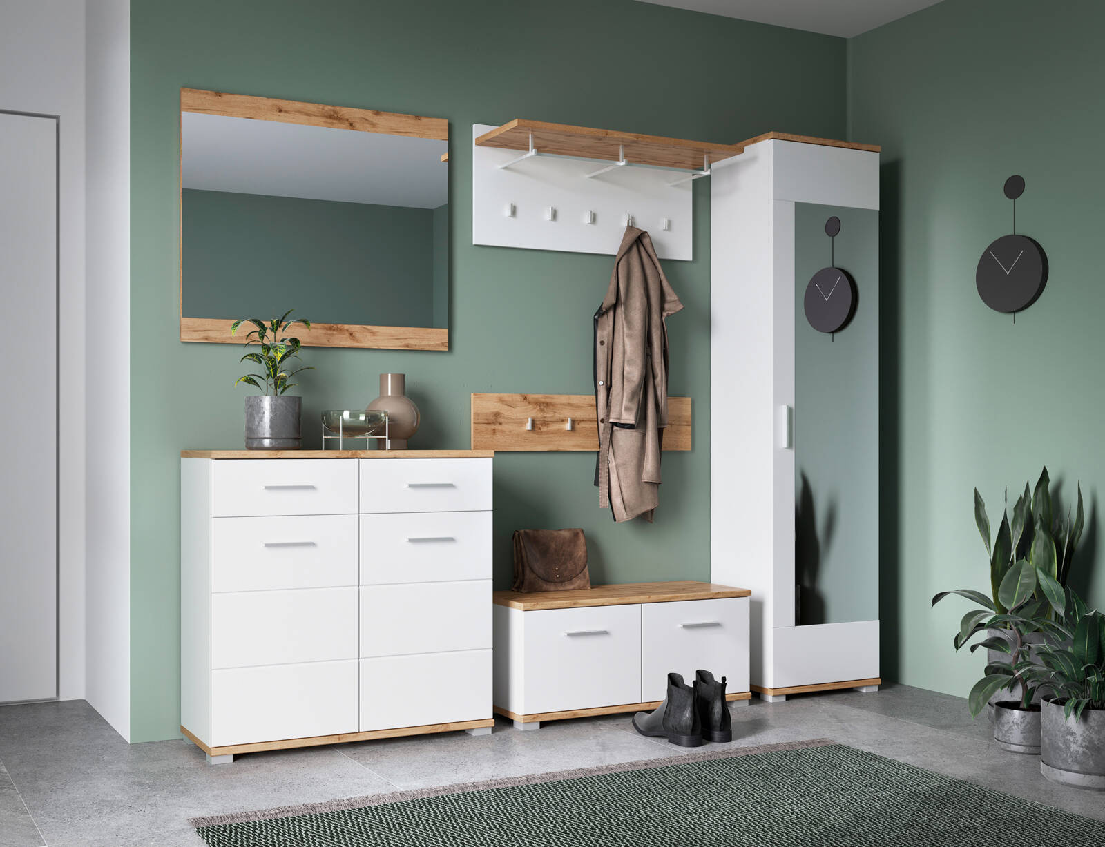 Stylowa kolekcja mebli do przedpokoju Hola jest przykładem efektownych, luksusowo prezentujących się brył, w których nowoczesna prostota idzie w parze z bielą, modnym połyskiem i ponadczasowym wybarwieniem drewna. Stwórz nowoczesny, luksusowo prezentujący się przedpokój z kolekcją Hola. Nawet małe wnętrze zyska niepowtarzalny efekt.