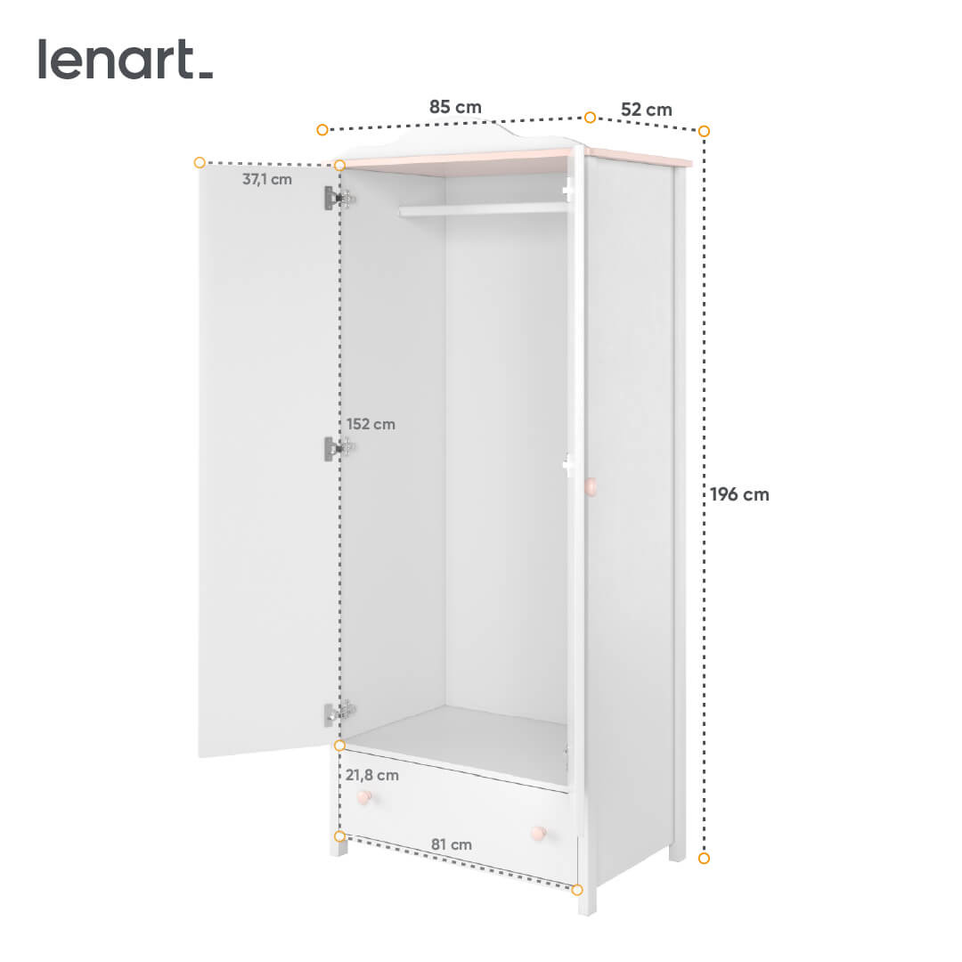 Dwudrzwiowa szafa stworzona z myślą o pokojach dziewcząt lubiących baśniowy styl.