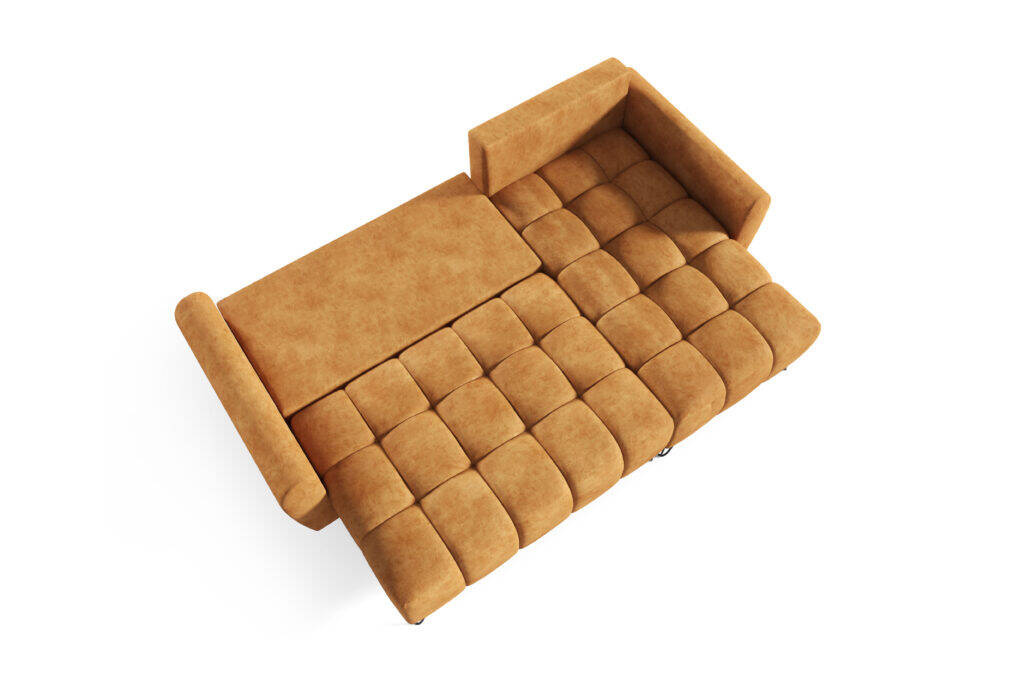 Narożnik Manhattan Mini to piękny design, który zaprasza do stworzenia w domu atmosfery stylowego komfortu. Idealnie wpasuje się zarówno w nowoczesny salon, pokój młodzieżowy, jak i pokój gościnny, dodając im elegancji. Automatyczny mechanizm rozkładania typu DL umożliwia łatwe przekształcenie narożnika w łóżko. Dodatkowo narożnik wykończony miękkim w dotyku pluszem, wyposażony jest w pojemnik na pościel oraz stylowe poduszki. Jego industrialne metalowe nogi dodają nowoczesnego charakteru i zapewniają solidne wsparcie.