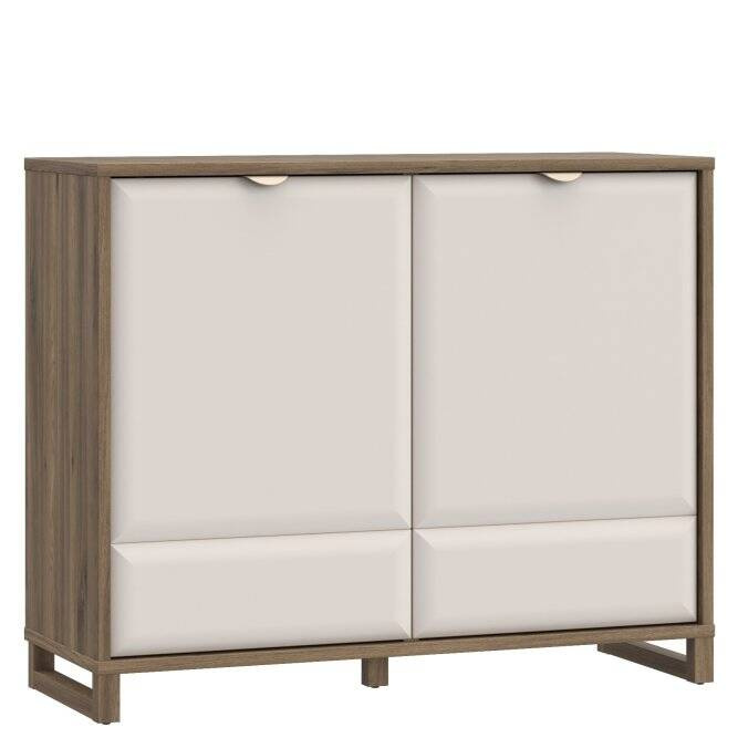 Wyjątkowa kolekcja MAREDA to stylowa propozycja do pokoju dziennego, w którym liczy się komfort, ekspozycja i przechowywanie. Połączenie tych wszystkich właściwości odnajdziesz w komodach, witrynie, szafce RTV, szafie i półce, a wygodne miejsce do przyjmowania gości zapewnia stolik okolicznościowy. Całość osadzona jest na solidnych nogach „U”. Meble w połączeniu dekorów Dąb Valencia i Piaskowy zostały wyposażone w wygodne uchwyty w kolorze aluminium.