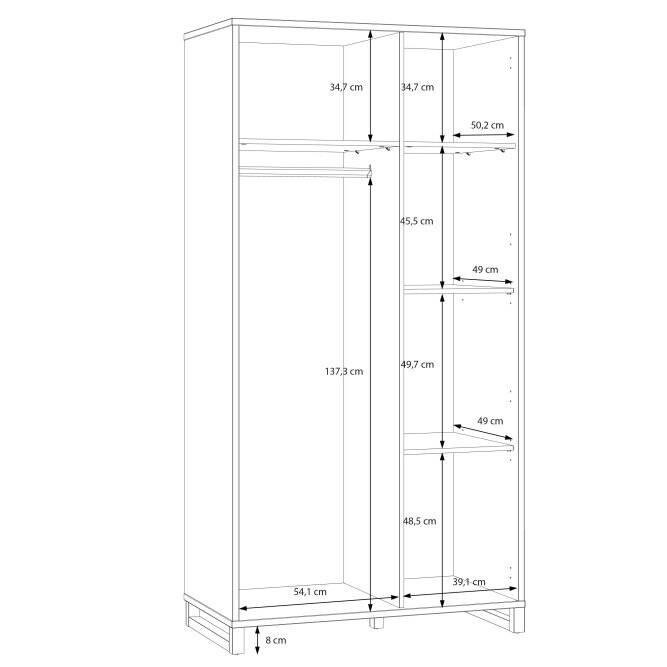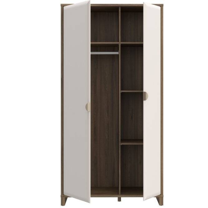 Szafa ubraniowa MAREDA jest idealna do przechowywania ubrań i akcesoriów w salonie. Jej kompaktowe wymiary oraz przemyślana konstrukcja z 4 półkami i drążiem na wieszaki ułatwia organizację garderoby, a nowoczesny wygląd wpasuje się w aranżację wnętrza pokoju dziennego.
