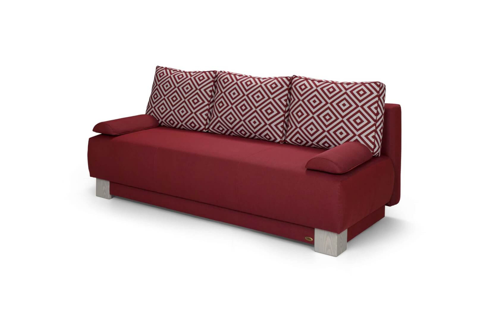 Kanapa MAX IX [3 KN.PJ]. Posiada funkcję spania i pojemnik na pościel. Elementy drewniane dostępne w kolorach ze wzornika wybarwień UNIMEBEL. Produkt dostępny w pełnej ofercie tkanin UNIMEBEL.