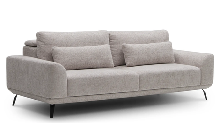 Sofa trzyosobowa Misty z podnoszonym oparciem i wysuwnym elektrycznie siedziskiem zachwyca formą, dzięki której doskonale wpisuje się w przeróżne aranżacje i nie przestaje być modna nawet po wielu latach użytkowania. Aby wyeliminować problem z dopasowaniem nowej sofy do wyposażenia wnętrza, udostępniamy imponujący wzornik tkanin. Na jego podstawie możesz wybrać nie tylko kolor tkaniny, ale także jej rodzaj i właściwości, które ułatwiają codzienne użytkowanie.