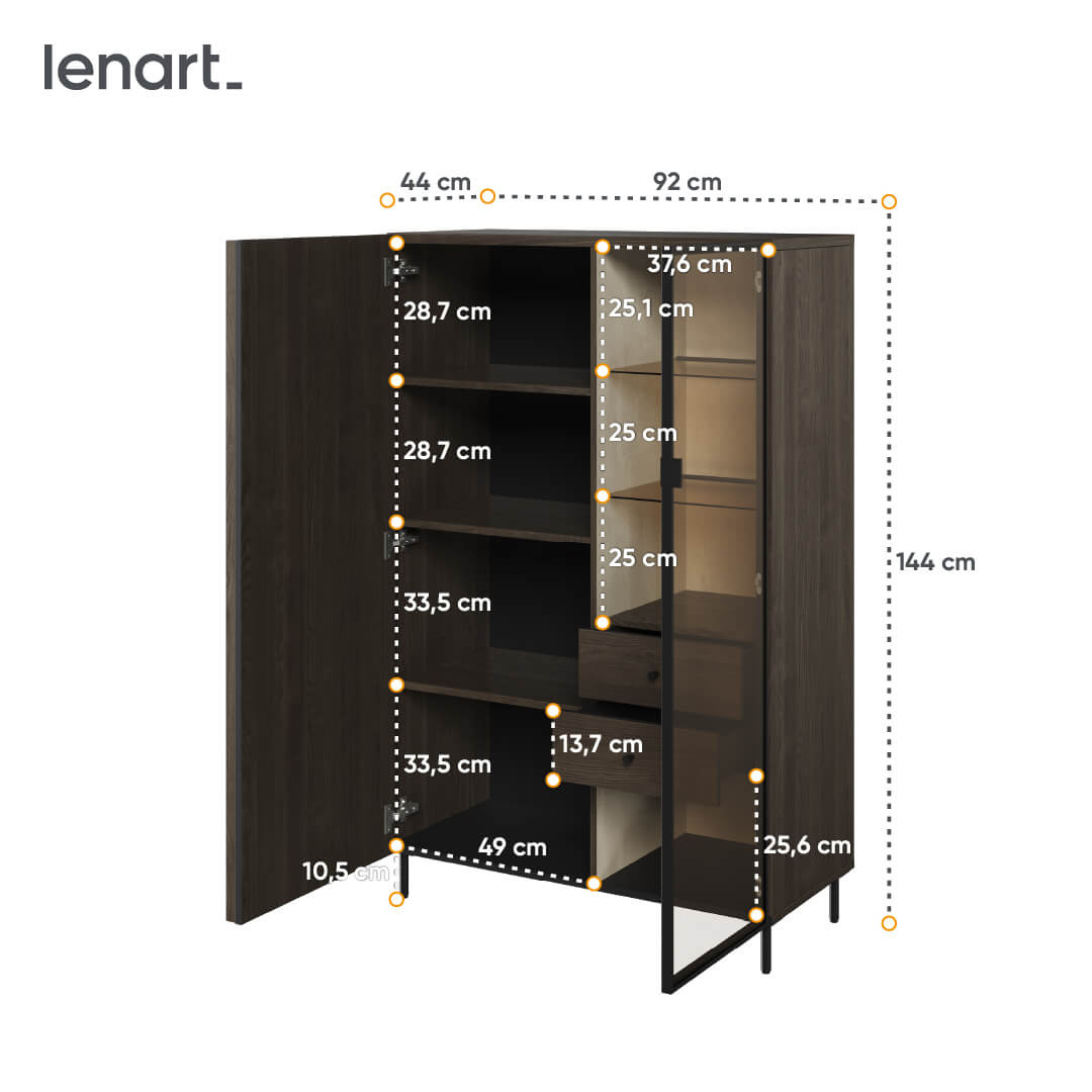Nowoczesna witryna z kolekcji PIEMONTE pozwala na przechowywanie i wyeksponowanie różnego rodzaju przedmiotów w sposób funkcjonalny i stylowy.
