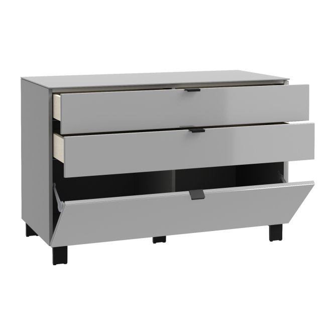 - Funkcjonalna komoda o wymiarach: szerokość 110,1 cm x wysokość 73,1 cm x głębokość 52,5 cm, z wieloma opcjami przechowywania rzeczy