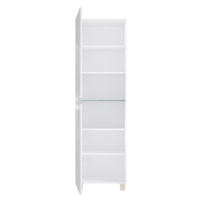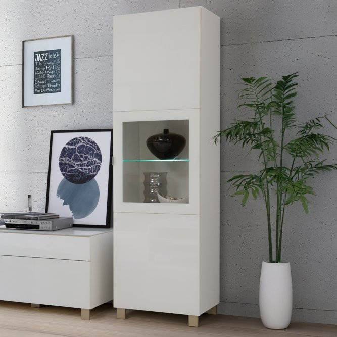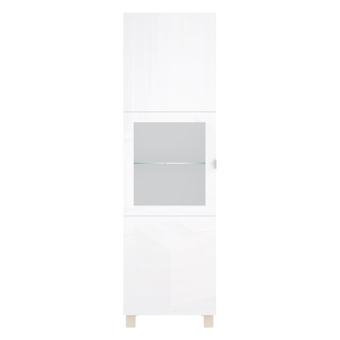 Elegancka i nowoczesna witryna będzie pasować do każdego wnętrza. Posiada odpowiednio dużo miejsca do przechowywania i wyeksponowania ulubionych dekoracji. Posiada podświetlaną półkę szklaną dzięki której można lepiej wyeksponować prezentowane dekoracje.