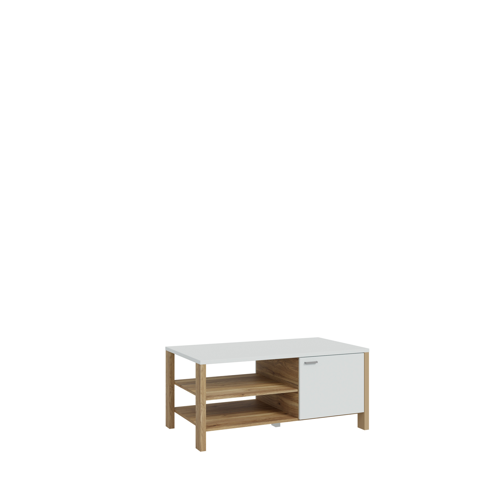 Ten uroczy stolik kawowy z kolekcji SAITAMA będzie doskonałym uzupełnieniem salonu urządzonego w stylu nowoczesnym lub skandynawskim. Na praktycznym blacie nie zabraknie miejsca na gorący napój, ciastko, słone przekąski i dekoracje. Pod blatem znajdziesz 2 otwarte wnęki, w których możesz odłożyć książkę, czasopisma, pilot do telewizora, serwetki lub podkładki pod naczynia. Dodatkową przestrzeń do przechowywania zapewnia zamykana szafka, w której ukryjesz część rzeczy przez wzrokiem gości. Urządź salon swoich marzeń, ustawiając w jego sercu fotel lub sofę oraz stolik kawowy SAITAMA wraz z innymi meblami z kolekcji.