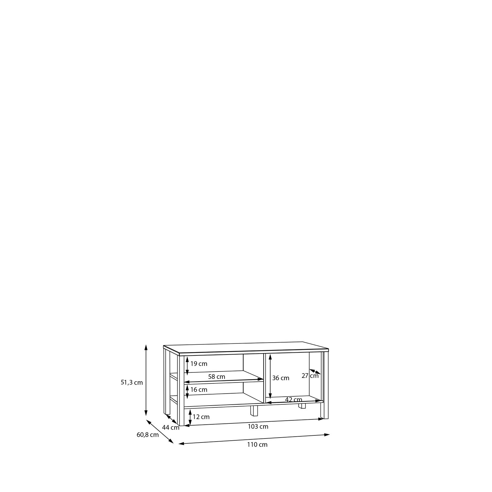 Wymiary: szerokość 110 cm, głębokość 59,6 cm, wysokość 51,3 cm