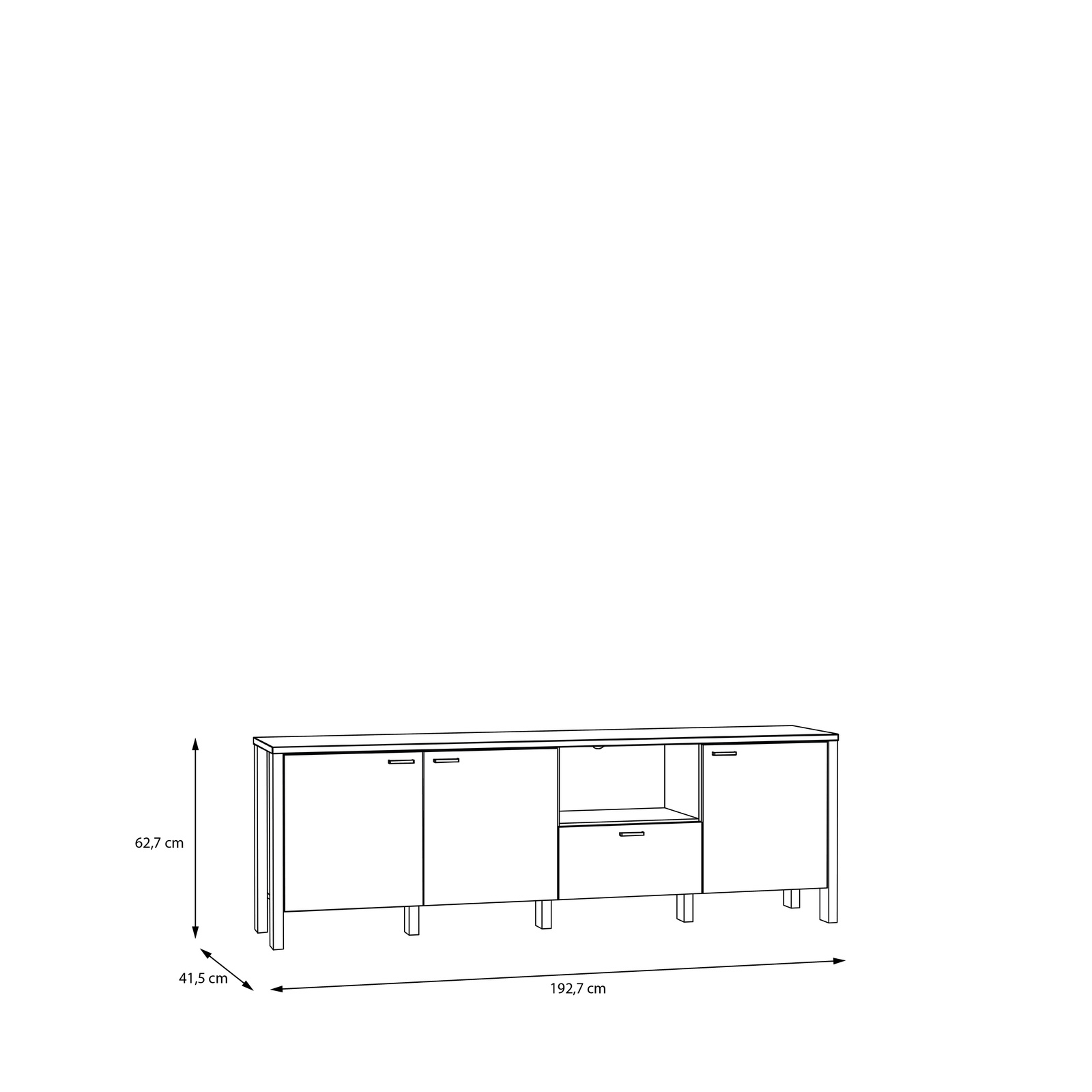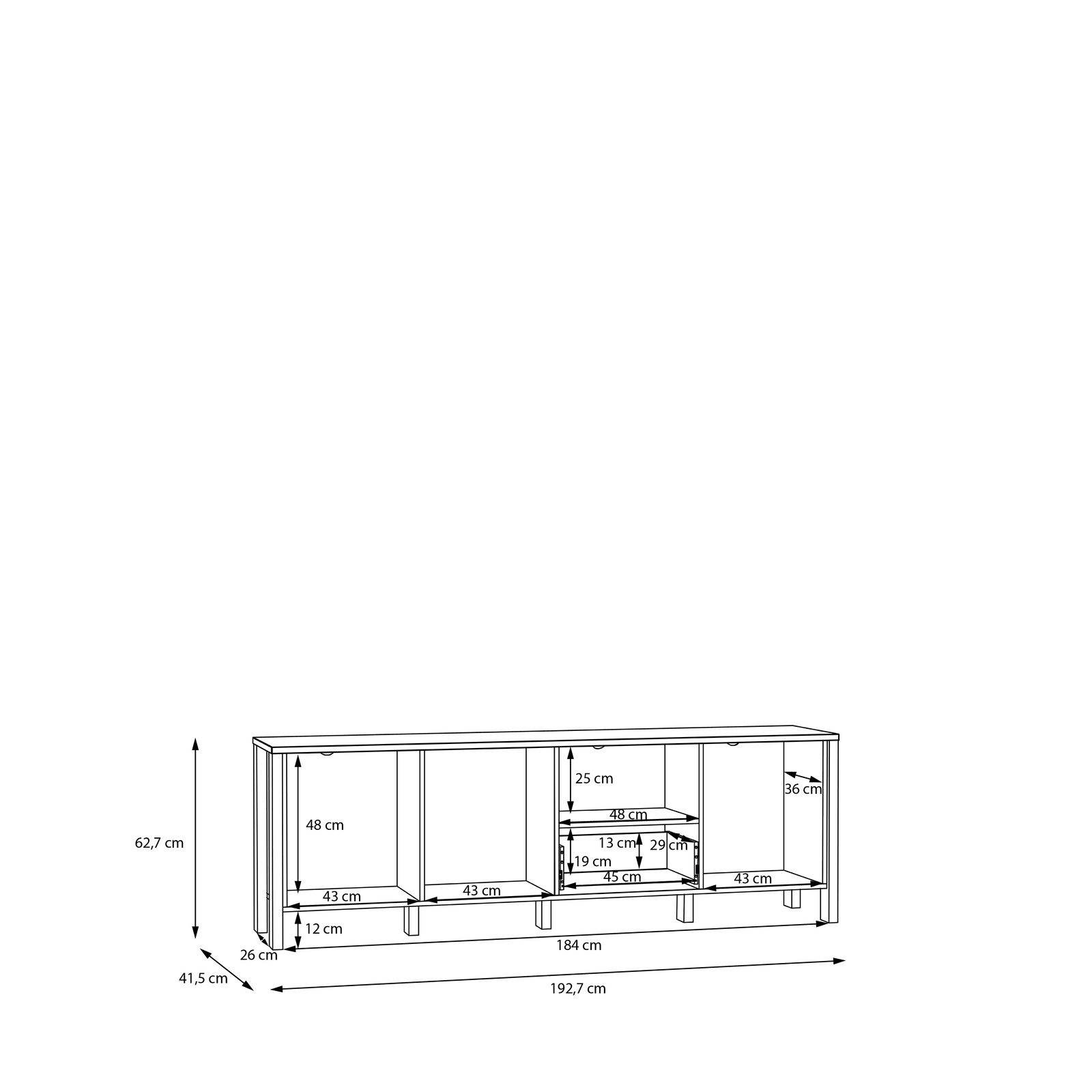 Szafka ma wymiary: szerokość 191,1 cm, wysokość 64,1 cm i głębokość 41,6 cm