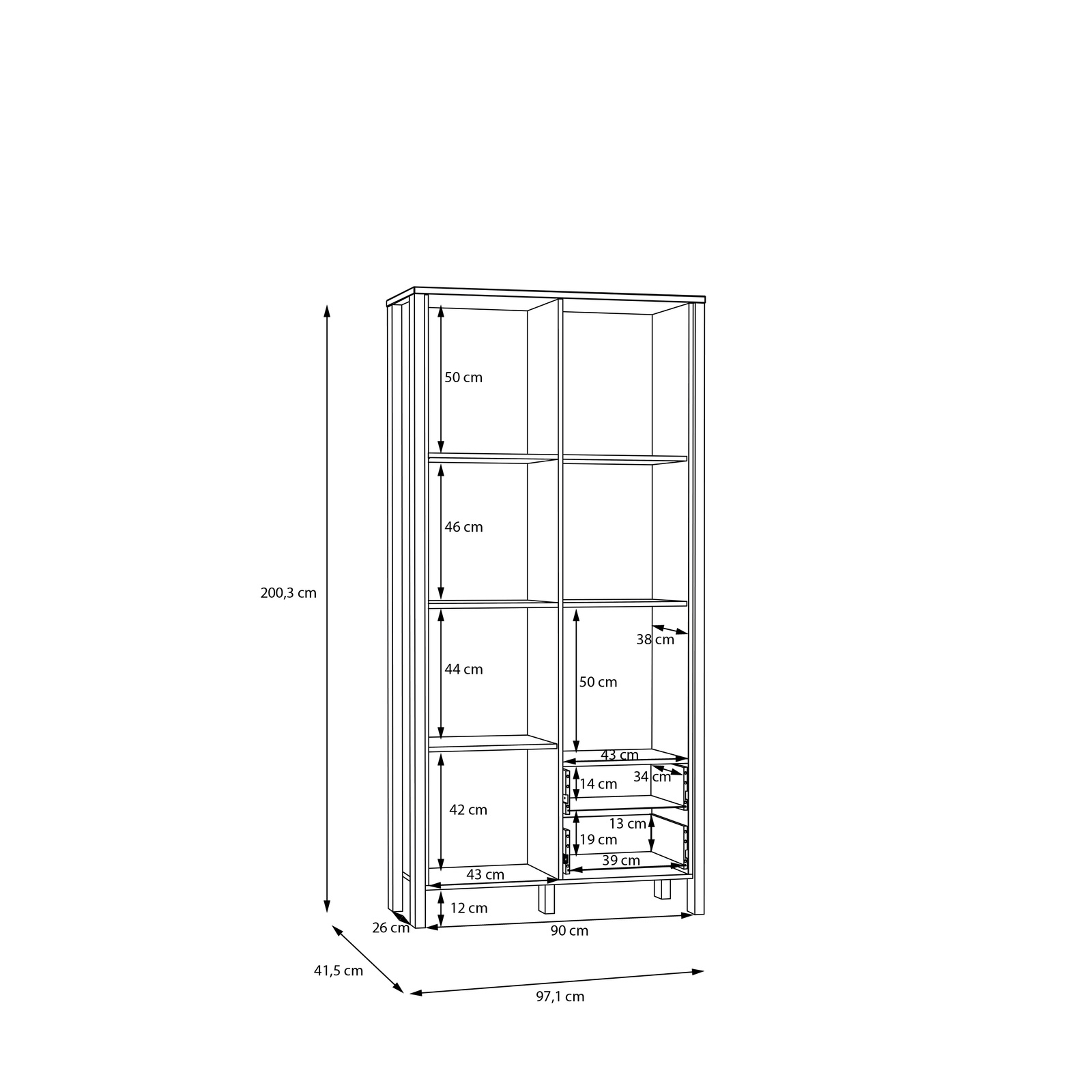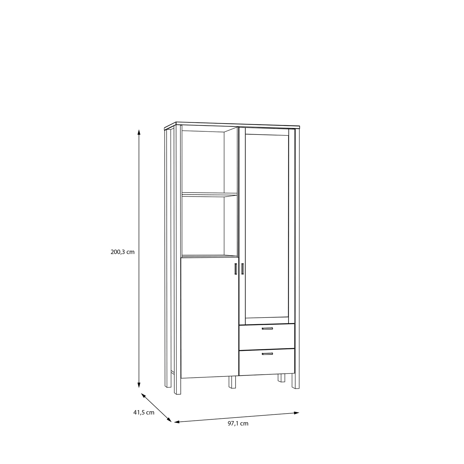 Wymiary: szerokość 96,7 cm, wysokość 201,7 cm, głębokość 41,6 cm