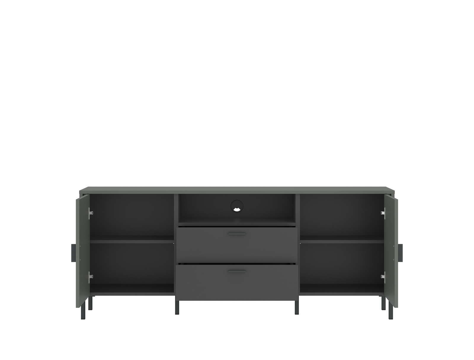 Multimedialne sprzęty w Twoim salonie stanowią istotny element wystroju, który stosowany jest każdego dnia? Wybierz piękną komodę RTV, która nie tylko stanie się podporą dla urządzeń, ale zapewni doskonały efekt wizualny niezależnie od zmieniających się trendów w aranżacji. Komoda RTV z kolekcji Shirley Zielony zachwyca połączeniem nowoczesnego designu z klasycznym efektem odcienia szarozielonego. Elegancka prezencja i funkcjonalność zapewniają doskonały wygląd mebla niezależnie od wybranych dodatków.