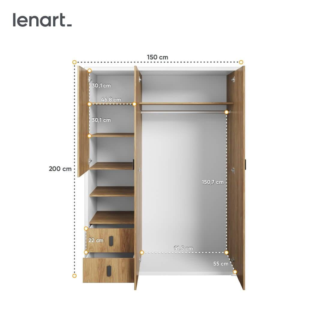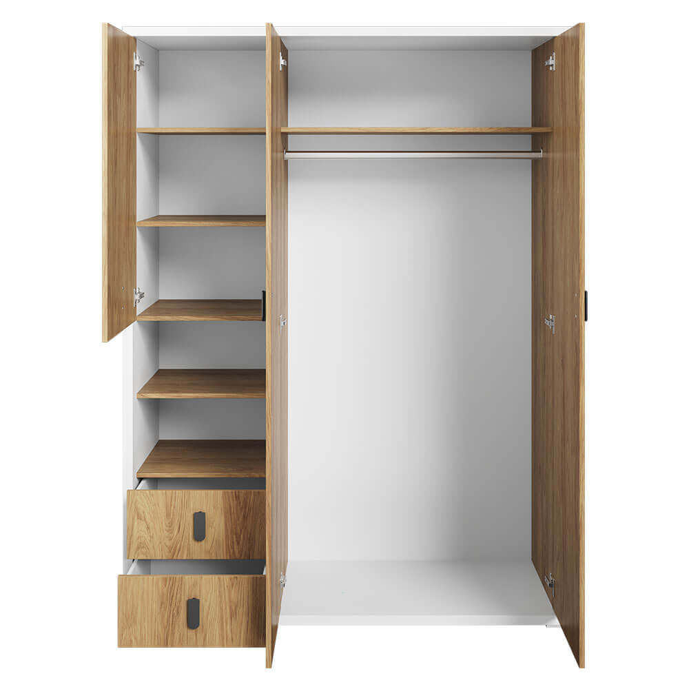Szafa z trojgiem drzwi, drążkiem, dwiema szufladami i dwiema wnękami