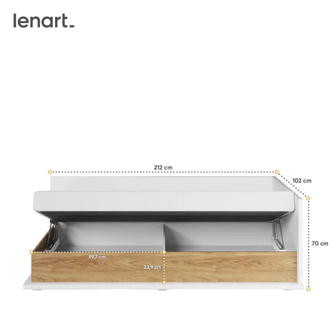 Łóżko z materacem i pojemnikiem na pościel, wersja prawa