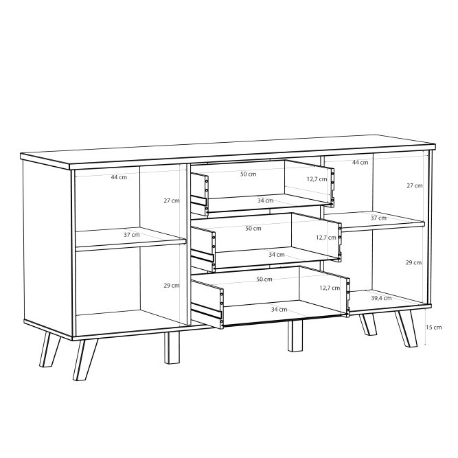 Komoda 150 cm VANKKA będzie funkcjonalnym i wyróżniającym się elementem wystroju Twojego mieszkania. Połącz z innymi meblami z kolekcji, aby stworzyć spójną aranżację wnętrza.