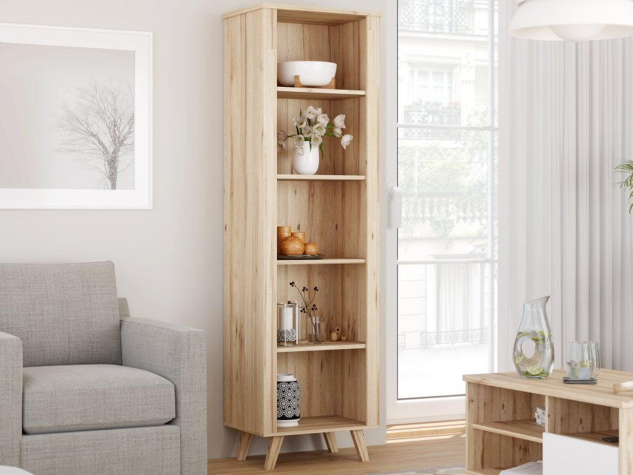 Regał 60 cm VANKKA będzie funkcjonalnym i wyróżniającym się elementem wystroju Twojego mieszkania. Połącz z innymi meblami z kolekcji, aby stworzyć spójną aranżację wnętrza.
