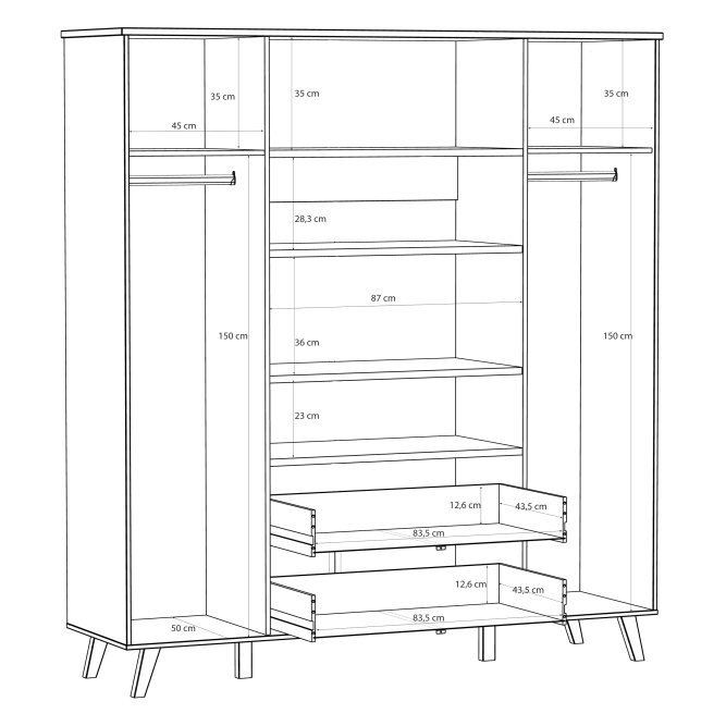 • Wymiary: szerokość: 184,1 cm, wysokość: 201,5 cm, głębokość: 52,7 cm
